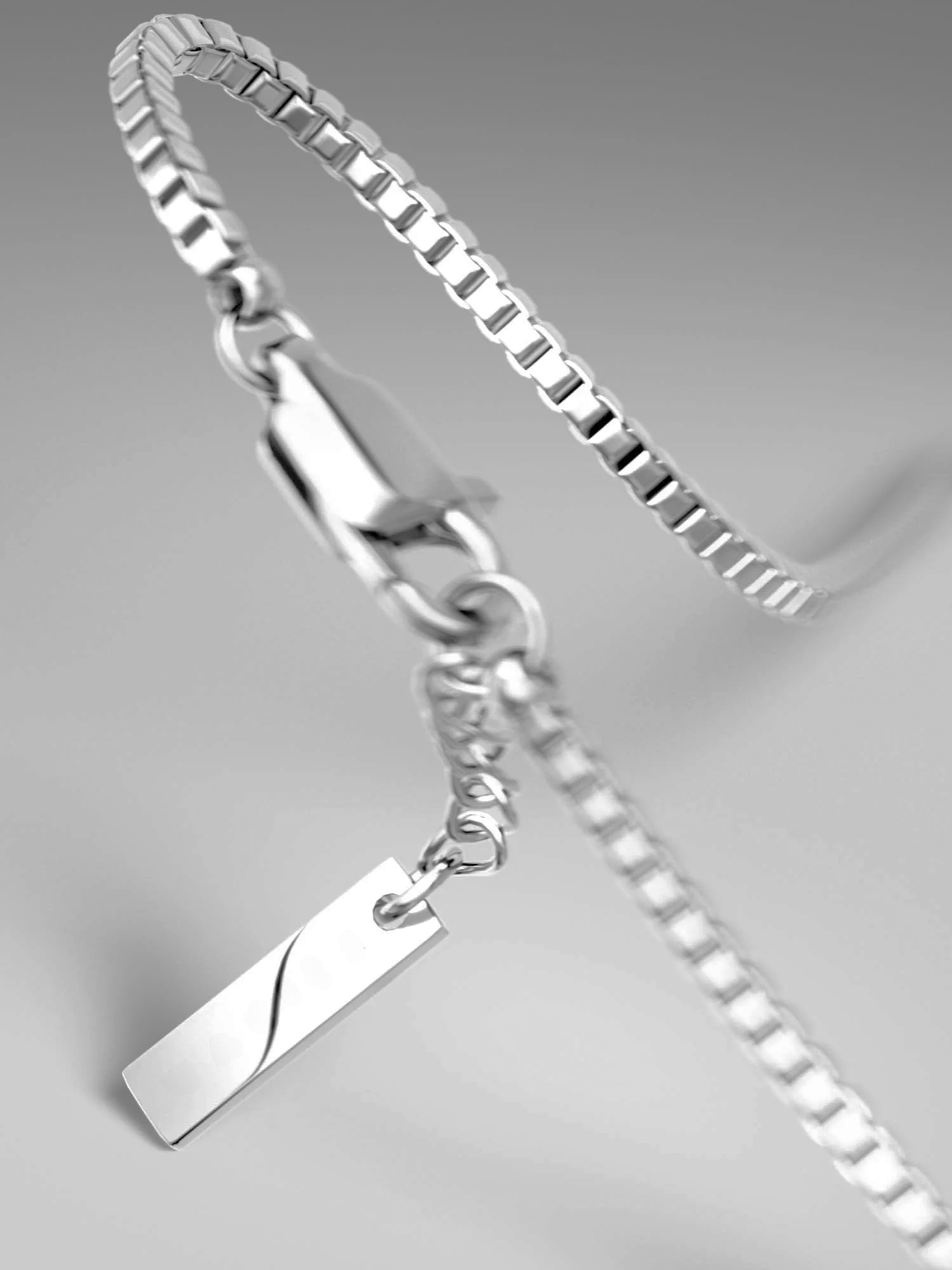 No more compromises between minimalism and strength. The Square Chain Bracelet embodies understated elegance with a modern edge. Its fluid, tightly woven links create a sleek silhouette that moves effortlessly with the wrist, while the polished silver finish reflects light with every turn.